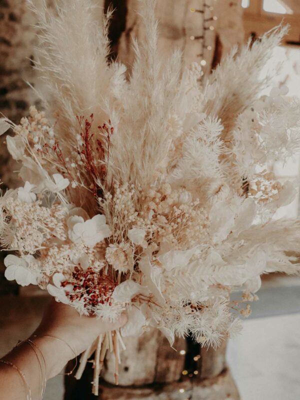 Les couronnes en fleurs séchées de L’Esprit Sauvage sont des modèles uniques, fabriqués à la main avec amour dans mon atelier à Toulouse. Elles viendront apporter une touche fleurie délicate.