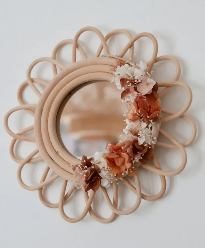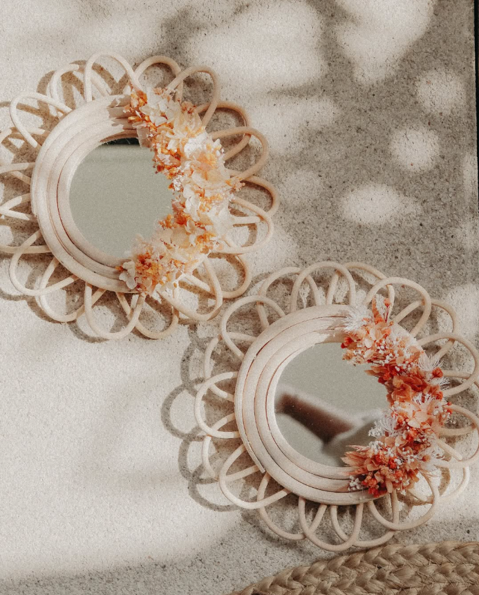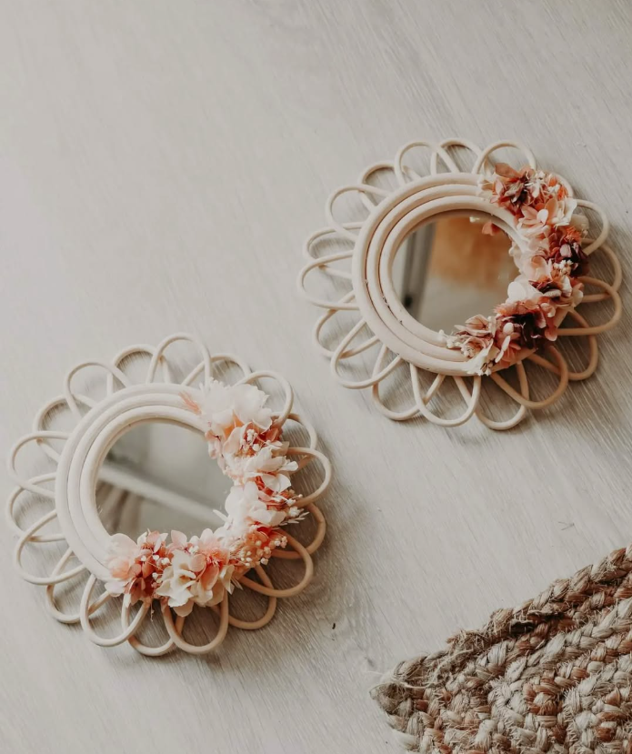 Les créations en fleurs séchées de L’Esprit Sauvage, sont des modèles uniques, fabriqués à la main avec amour dans mon atelier à Toulouse. Optez pour des fleurs séchées, le miroir en rotin est le cadeau idéal pour une naissance, décorer une entrée, en triptyque comme office de tête de lit ou encore simplement à offrir ou à s’offrir.