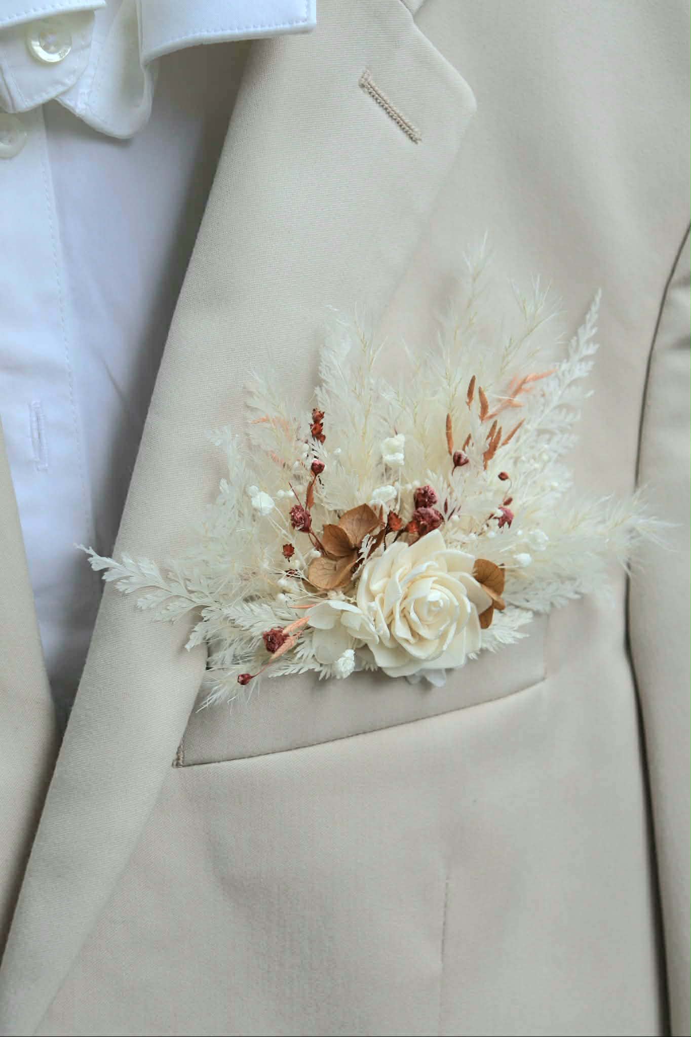 Les pochettes fleuries de L’Esprit Sauvage sont des modèles uniques, fabriquées à la main avec amour dans mon atelier à Toulouse. Elles apporteront une touche fleurie délicate à vos tenues de mariage. Possibilité d’envoi partout en France et à l’International.
